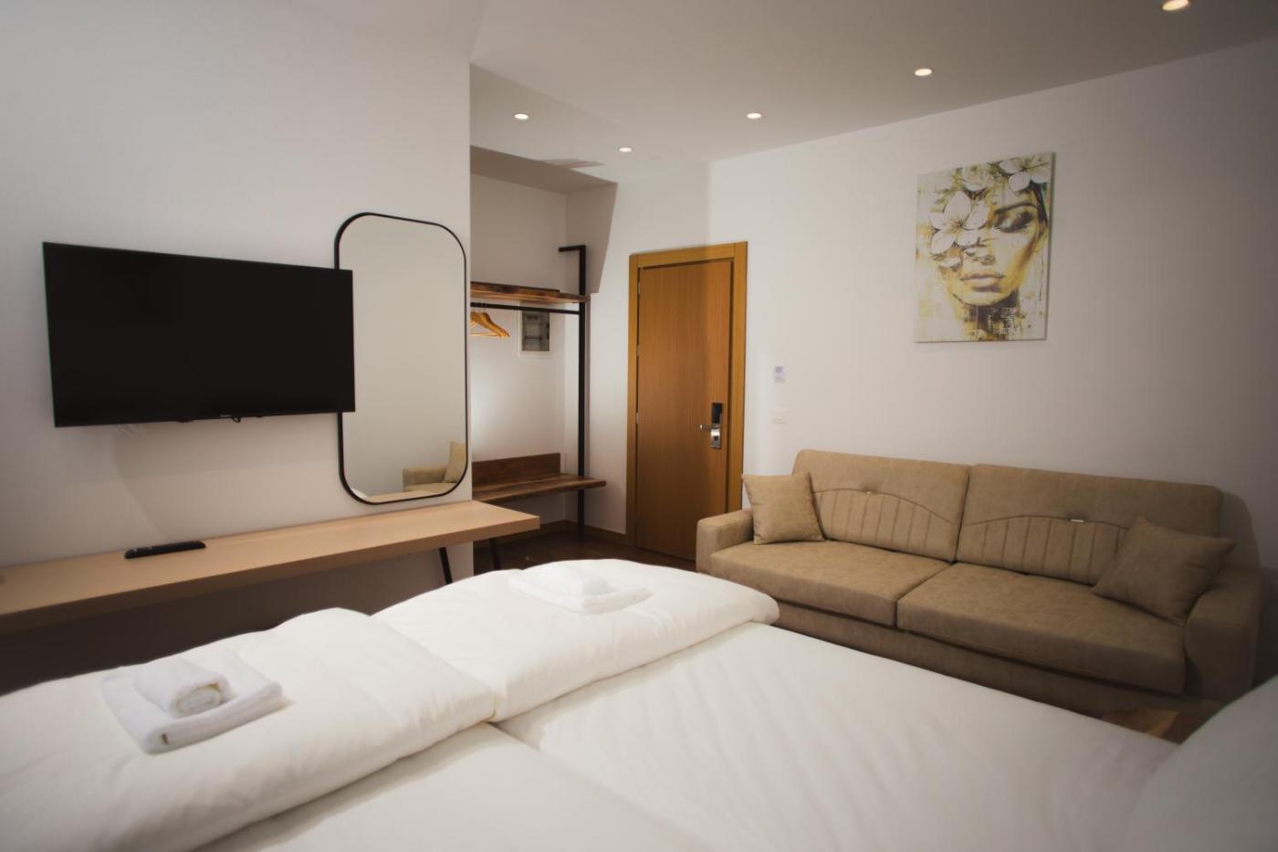 Deluxe Double or Twin Room. Providing free toiletries and bathrobes, this twindouble room includes a private bathroom with a bath, a shower and a hairdryer. The air-conditioned twindouble room provides a flat-screen TV, soundproof walls, a seating area, a wardrobe as well as mountain views. ;